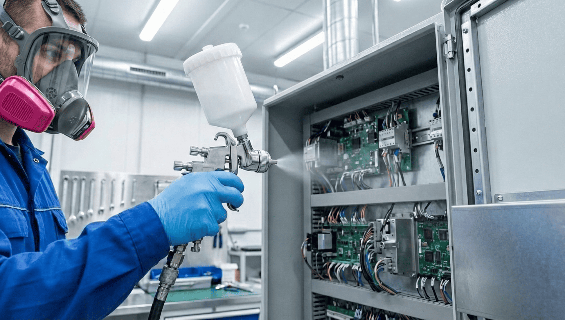 - Coat connector bodies, conduit fittings, and complex assemblies without affecting fitment: Its conformal, ultra-thin film reaches pin housings, conduit threads, DIN rail-mounted hardware, and cable entry points without adding noticeable thickness or interfering with mating tolerances, torque requirements, or IP-rated enclosure sealing.