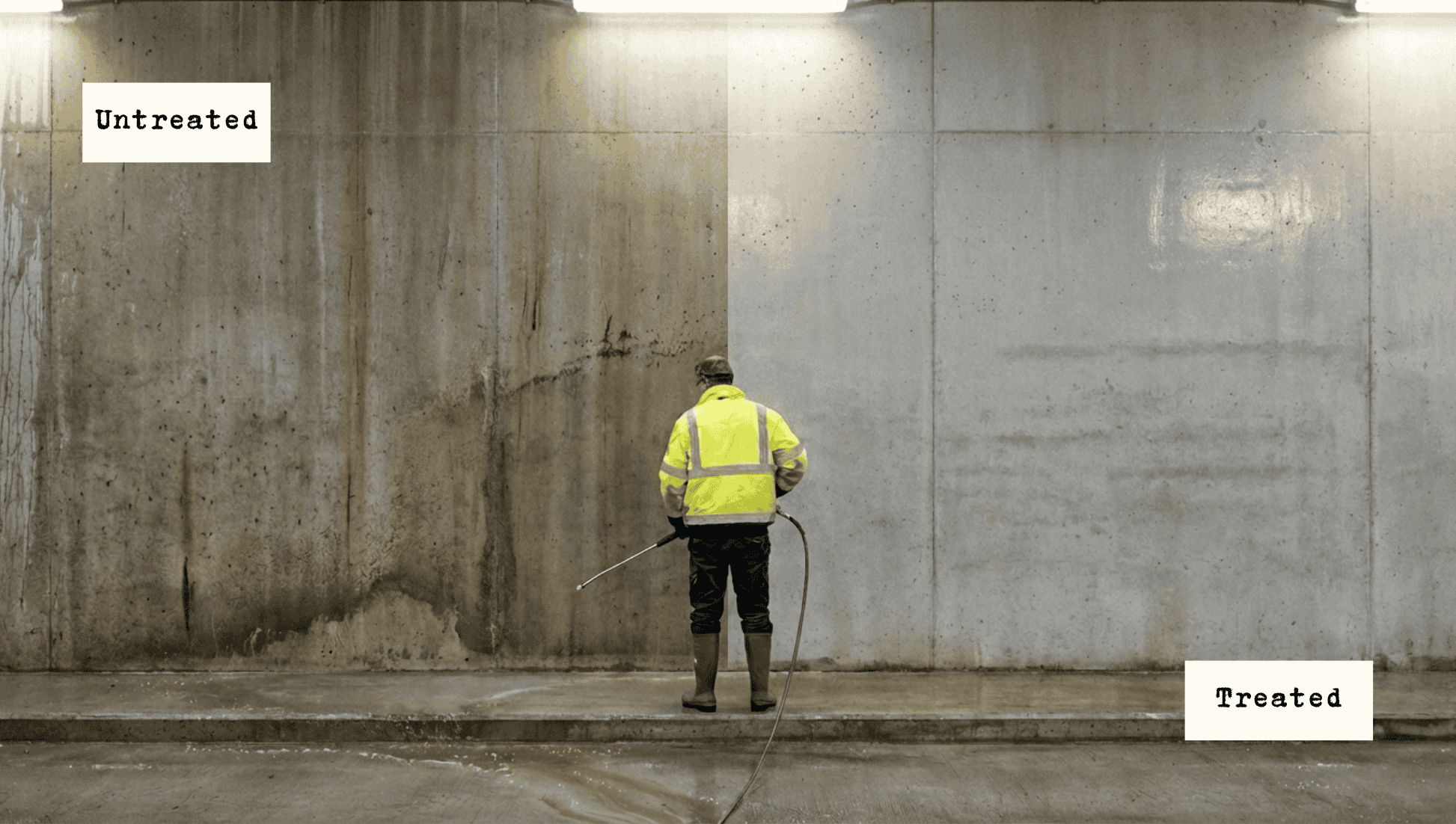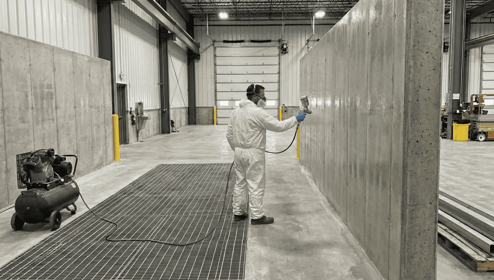 - Rental yard structures: Service bay walls, columns, and nearby surfaces that see frequent contamination from equipment returning from the field. Gentoo helps keep these areas cleaner between uses.